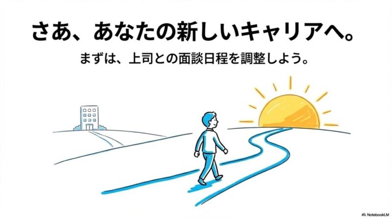 次の一歩は、本記事のステップ1で紹介した文例を参考に、あなたの上司との面談日程を調整することです。正しい知識と準備を武器に、自信を持って、あなたの新しいキャリアへの扉を開きましょう。